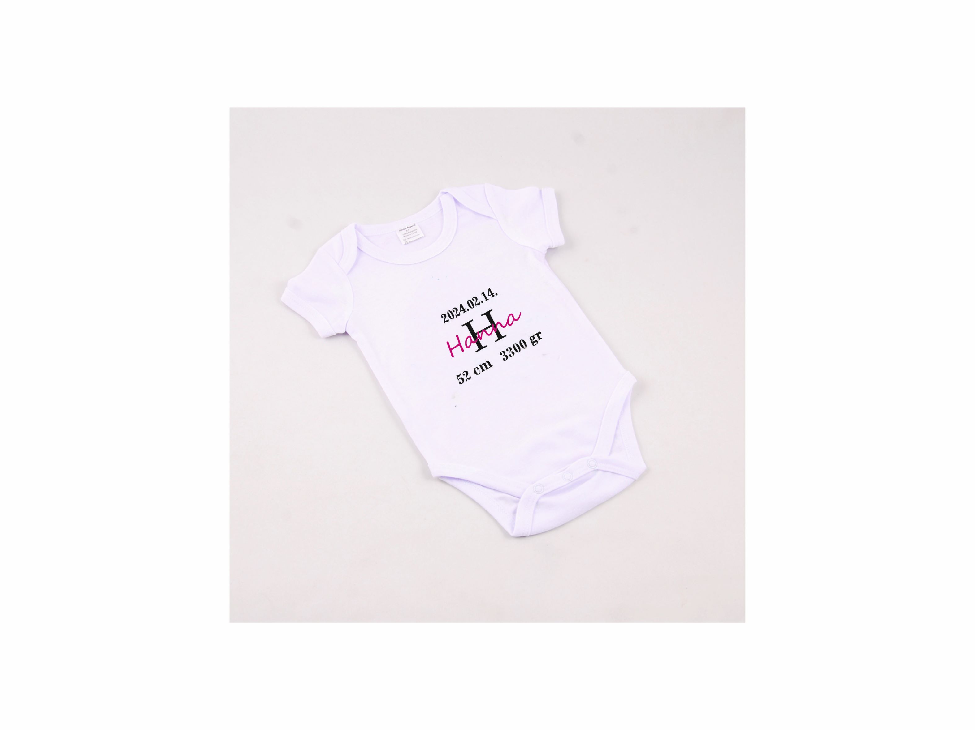 Egyedi grafikával ellátott baba body: 0-3, 3-6, 6-9, 9-12 hónapos babák részére. A megrendelésnél a megjegyzés rovatban kell feltüntetni a méretet.