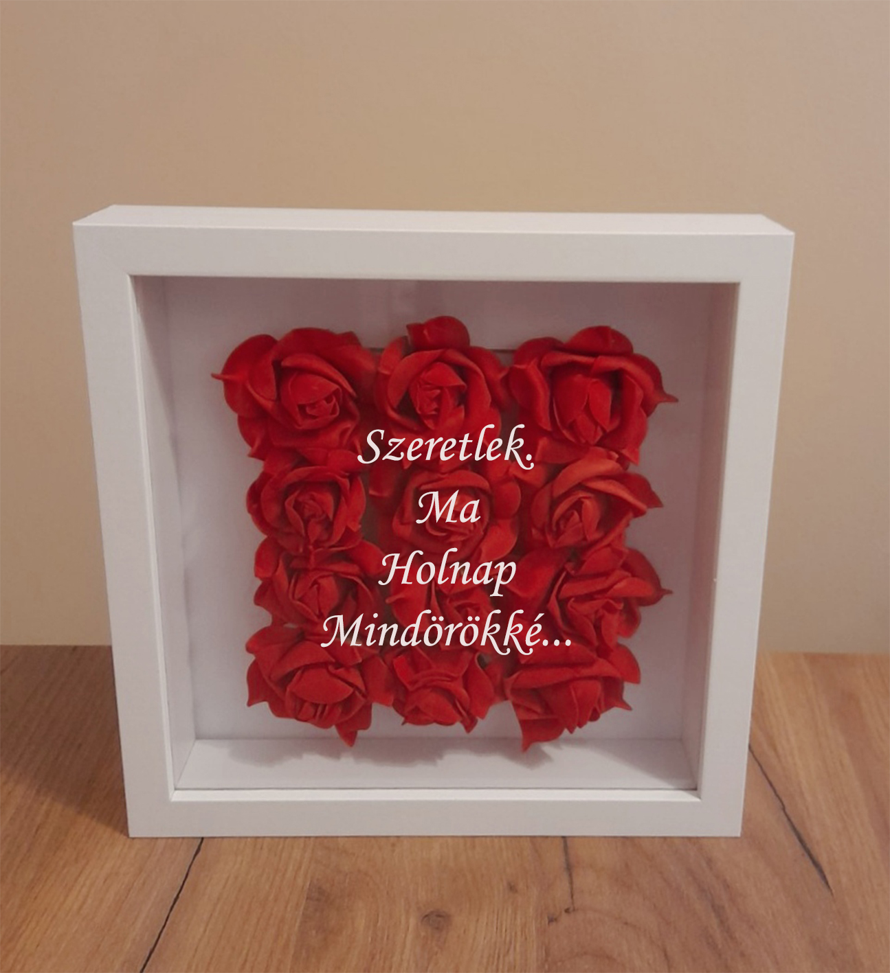 Képkeret egyedi felirattal, rózsákkal