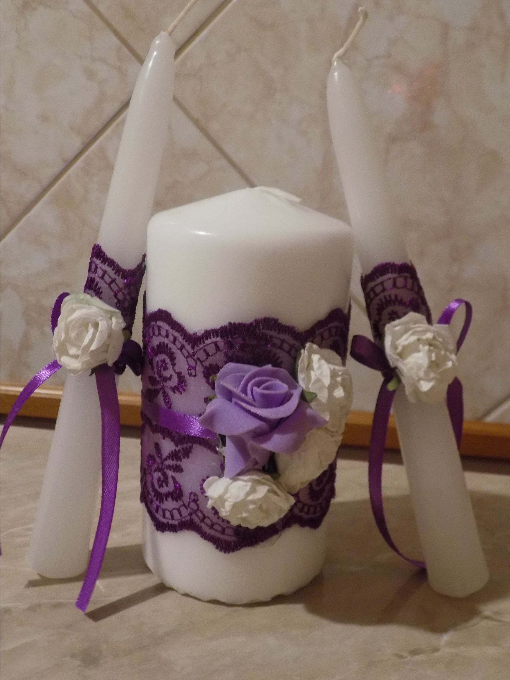 Gyertyaszett esküvői szertartáshoz. Bármilyen színű szalaggal kérhető.