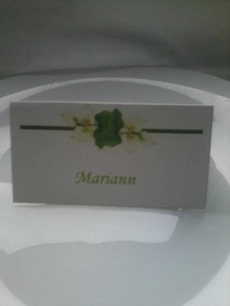 Ültetőkártya szalaggal és gyönggyel