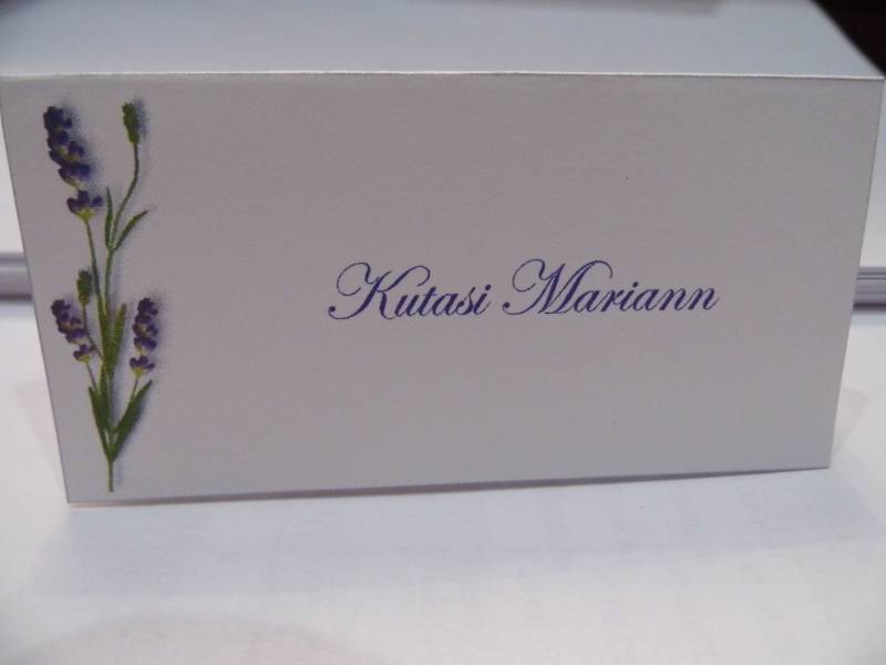Az ültetőkártyához ilyen mintával rendelhető még köszönetajándék, menükártya, asztalszám, boros címke is. Az írás bármilyen színnel kérhető.