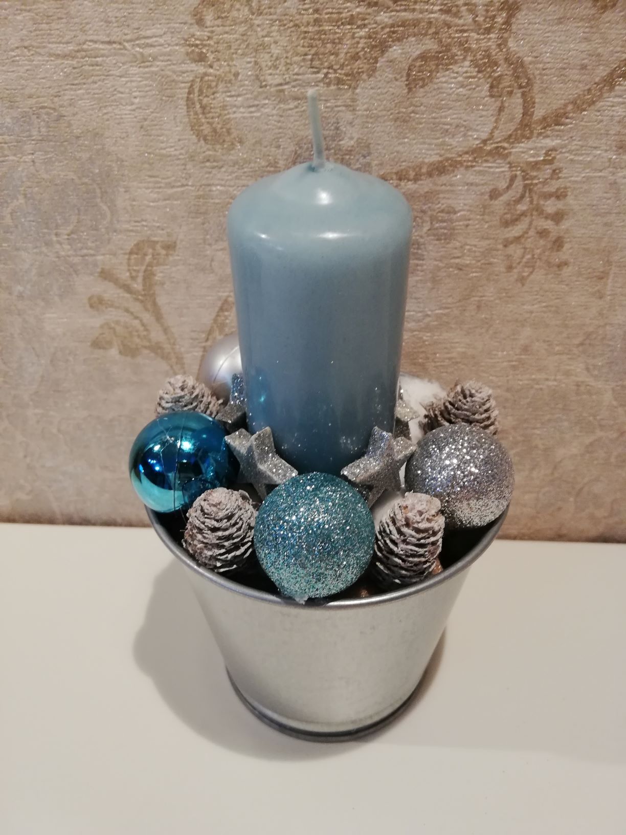12 cm átmérőjű asztaldísz türkiz-ezüst színkombinációban.
