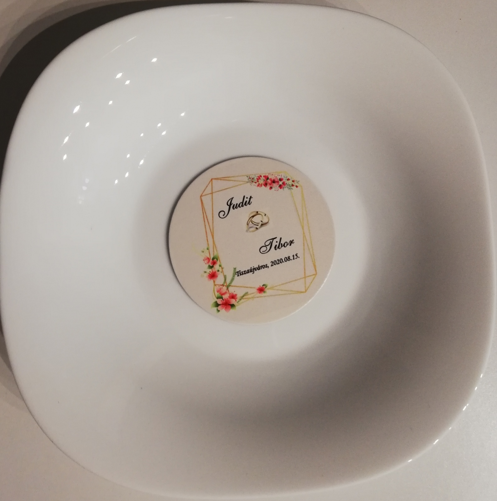 8 cm átmérőjű. Bármilyen felirattal kérhető. Amennyiben ültetőkártyaként is funkcionál + 50 Ft/db.