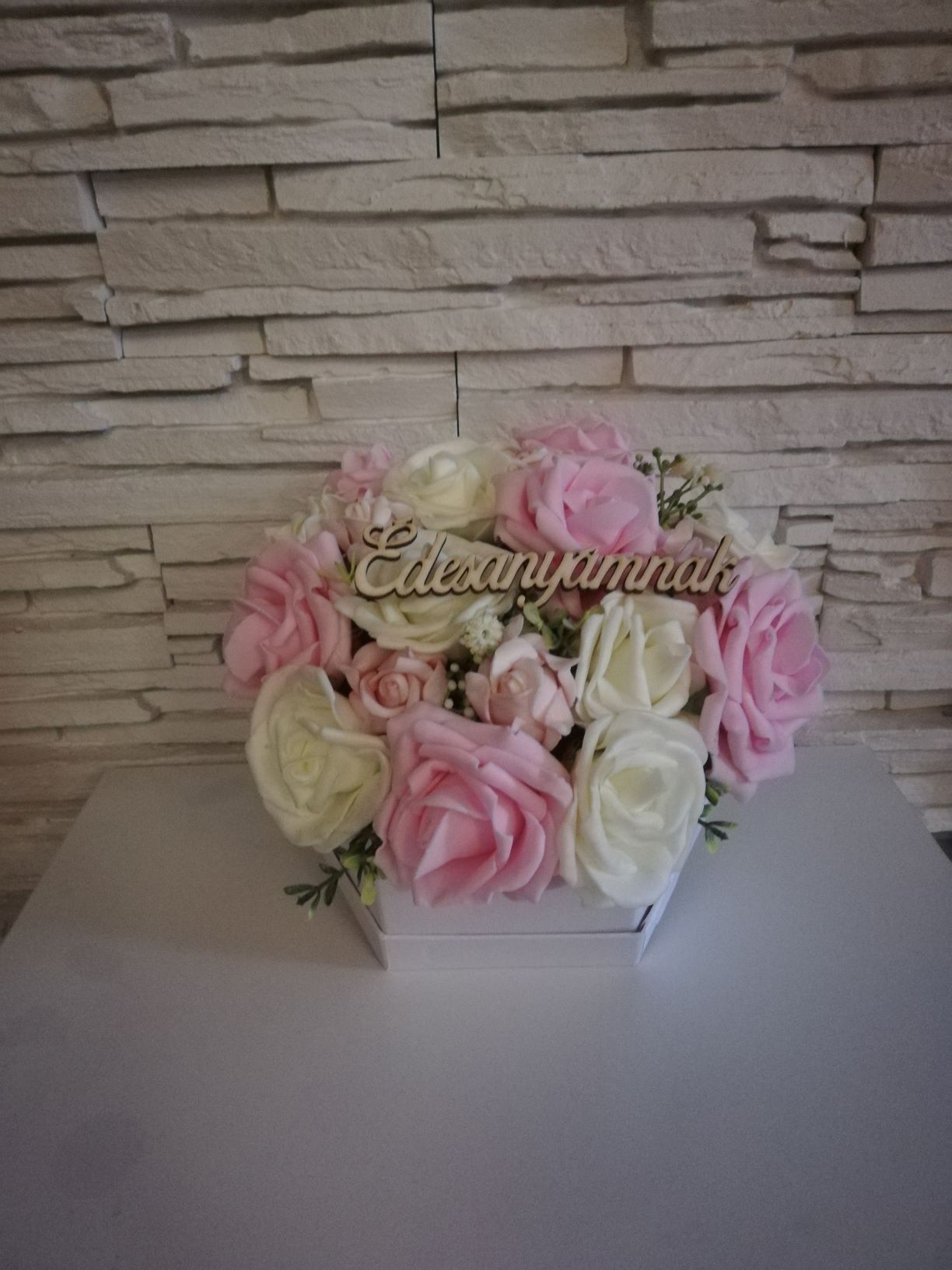 Rózsabox hatszög dobozban rózsaszín színvilágban