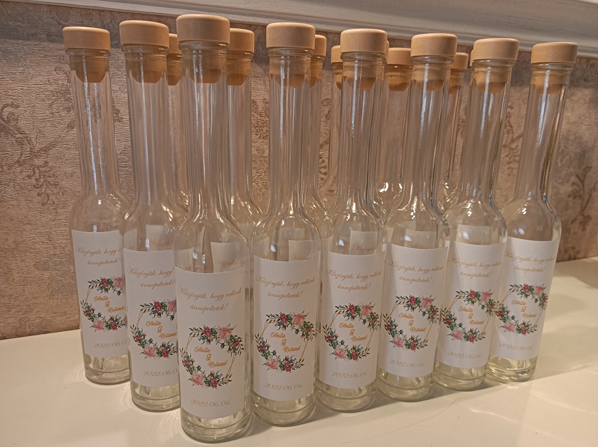 4 cl-es üveg egyedi címkével, zárókupakkal.