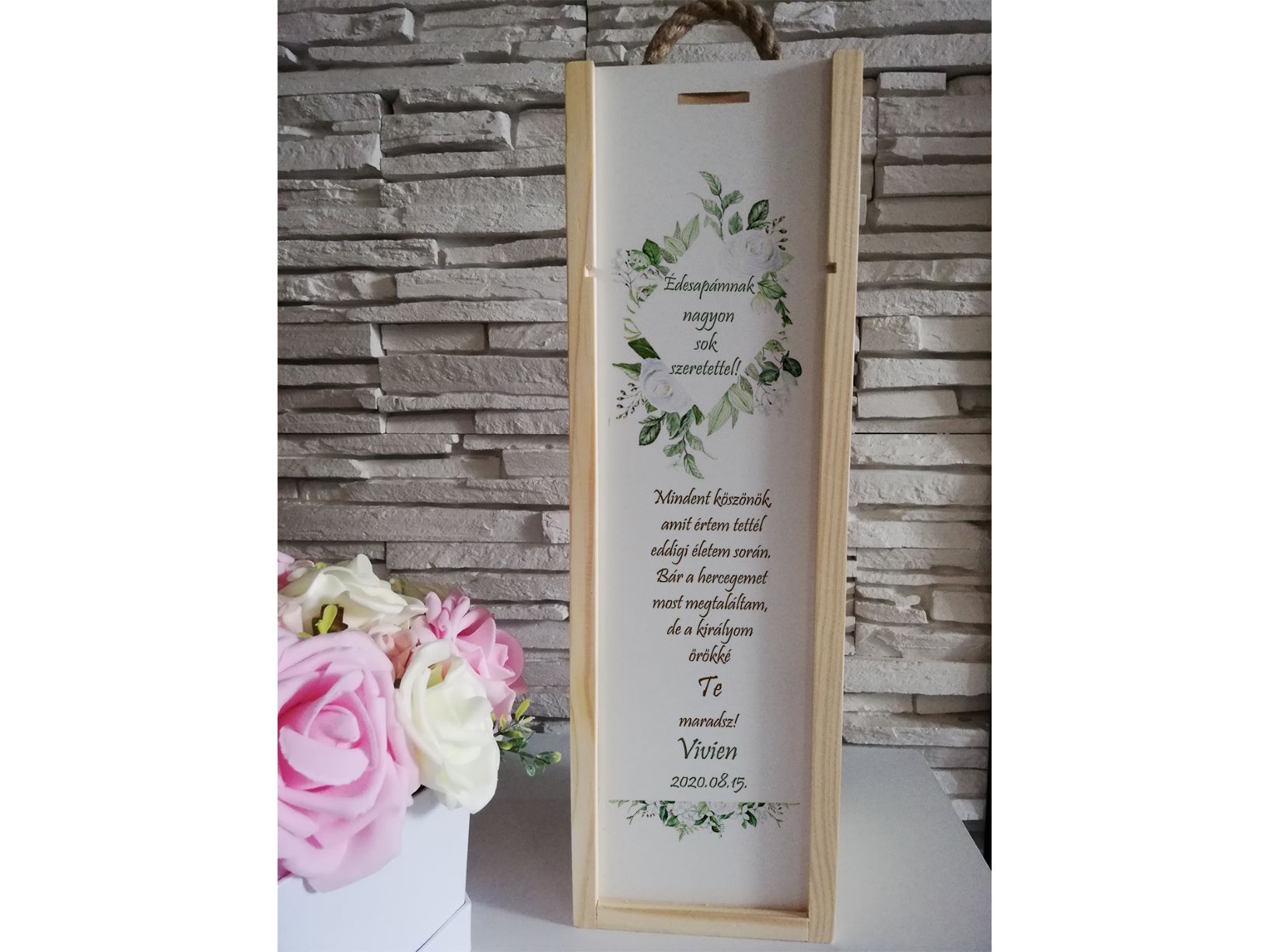 Fa bortartó greenary stílusban, akár egyedi szöveggel is kérhető. Mérete: 35 x 10 x 10 cm.