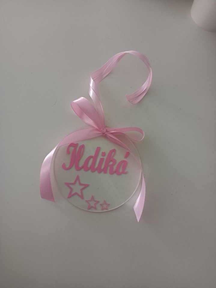 Plexi karácsonyfadísz rózsaszín felirattal